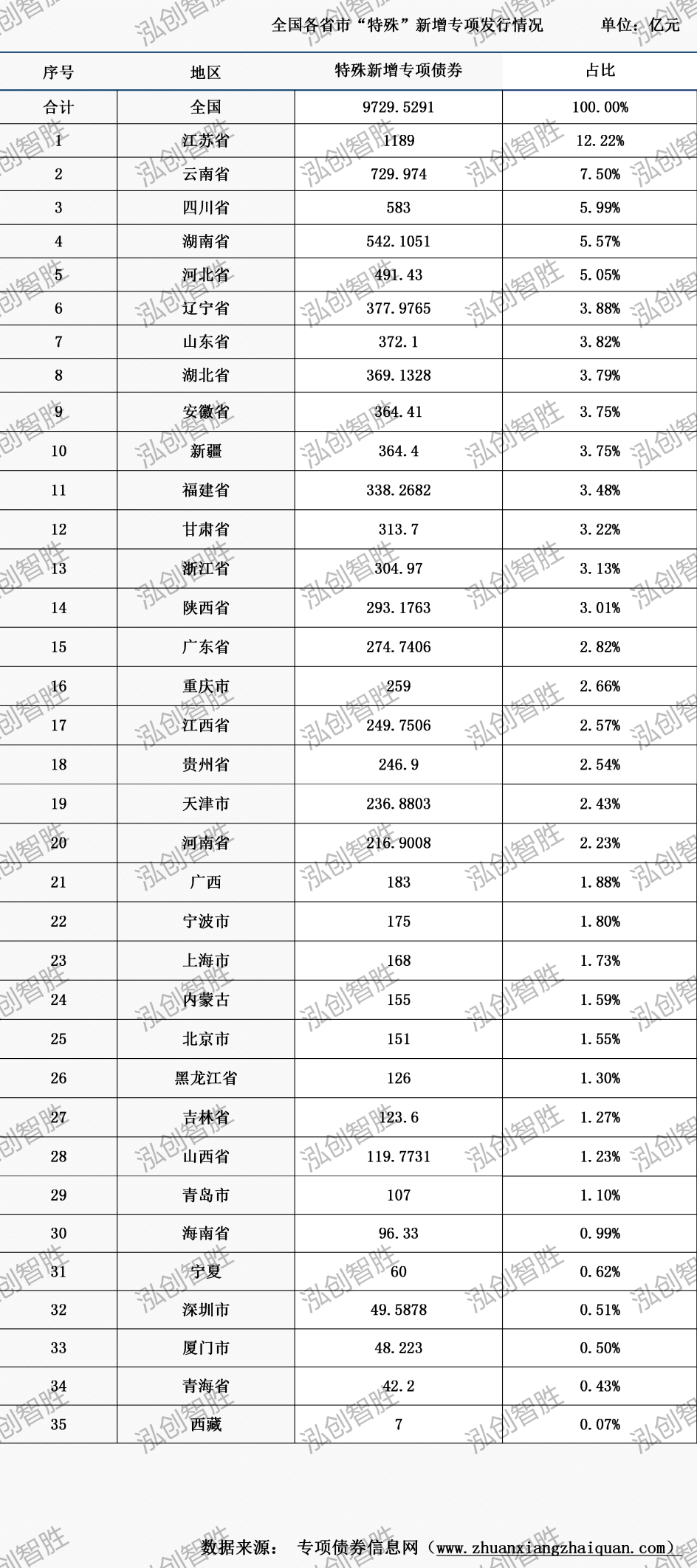 全國(guó)發(fā)行情況 (01.01-08.24) 發(fā)行概況 2025年全國(guó)各類“特殊”地方政府債券發(fā)行情況(含已披露未發(fā)行) 截至8月24日,已有浙江、河南等35個(gè)地區(qū)發(fā)行“特殊”新增專項(xiàng)債券,發(fā)行規(guī)模9729.5291億元; 已有33個(gè)地區(qū)發(fā)行“特殊”再融資債券,發(fā)行規(guī)模19368.5687億元;均用于“置換存量隱性債務(wù)”和“償還存量債務(wù)”,已完成全年置換債券額度的96.84%。 截至8月24日,2025年全國(guó)37個(gè)發(fā)行主體成功發(fā)行1498期地方政府債券,已發(fā)行規(guī)模為73228億元。 其中,專項(xiàng)債券56141億元,一般債券17087億元; 其中,新增債券36586億元(含專項(xiàng)債券30762億元);再融資債券36642億元。 截至8月24日,江蘇地區(qū)政府債券發(fā)行規(guī)模超5900億元; 山東、廣東、四川地區(qū)地方政府債券發(fā)行規(guī)模超4000億元; 浙江、湖南等4個(gè)地區(qū)地方政府債券發(fā)行規(guī)模超3000億元; 安徽、河北等7個(gè)地區(qū)地方政府債券發(fā)行規(guī)模超2000億元。 截至8月24日,2025年地方政府債券已發(fā)行73228億元,平均期限15.68年,平均利率1.90%。 截至8月24日,2025年新增專項(xiàng)債券已發(fā)行30762億元,平均期限18.05年,平均利率1.95%。 截至8月24日,全國(guó)已發(fā)行1498期地方政府債券,發(fā)行規(guī)模合計(jì)73228.05億元,其中,122期債券采取分年還本,涉及金額2687.03億元,占總發(fā)行規(guī)模的3.67%;其他期債券均采取到期一次性還本。 截至8月24日,全國(guó)27個(gè)發(fā)行主體已披露三季度地方政府債券發(fā)行計(jì)劃,計(jì)劃發(fā)行規(guī)模27309億元。 其中,專項(xiàng)債券20562億元,一般債券6747億元; 其中,新增債券17456億元(含專項(xiàng)債券15665億元); 再融資債券9444億元。 注:貴州省計(jì)劃9月發(fā)行503.0409億元地方政府專項(xiàng)債券,因未披露債券性質(zhì),暫納入再融資專項(xiàng)債券進(jìn)行統(tǒng)計(jì)。 三季度地方債券和新增專項(xiàng)債券發(fā)行規(guī)模最大的地區(qū)均為廣東。 上周發(fā)行情況 (08.18-08.24) 上周發(fā)行規(guī)模3692億元; 其中,專項(xiàng)債券3127億元,一般債券564億元; 其中,新增債券2488億元(專項(xiàng)債券2393億元);再融資債券1203億元。 上周共有深圳、河北等14個(gè)地區(qū)發(fā)行110期地方政府債券,發(fā)行規(guī)模3691.50億元;其中,涉及78期新增專項(xiàng)債券,發(fā)行規(guī)模2392.68億元。 上周發(fā)行地方政府債券平均期限為17.35年,新增專項(xiàng)債券平均期限20.48年。 上周發(fā)行新增專項(xiàng)債券涉及8種期限類型,2年期、3年期、5年期、7年期、10年期、15年期、20年期、30年期。 其中,發(fā)行規(guī)模最大的為30年期,發(fā)行規(guī)模952.77億元,占總發(fā)行規(guī)模的39.82%。 發(fā)行規(guī)模最小的為2年期,發(fā)行規(guī)模1.80億元,占總發(fā)行規(guī)模的0.08%。 上周發(fā)行發(fā)行110期地方政府債券,發(fā)行規(guī)模合計(jì)3691.50億元,其中,13期債券采取分年還本,涉及金額134.17億元,占總發(fā)行規(guī)模的3.62%;其他期債券均采取到期一次性還本。 本周預(yù)計(jì)發(fā)行情況 (08.25-08.31)
