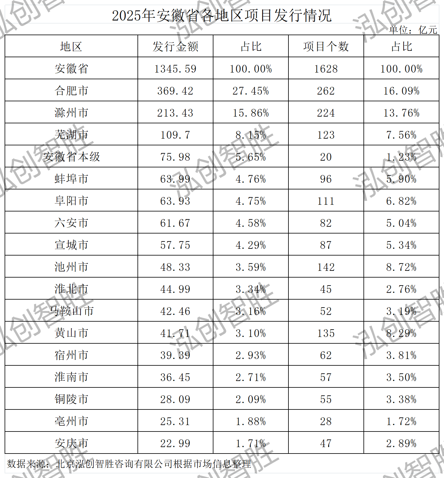 二、安徽省各地區(qū)債券發(fā)行情況