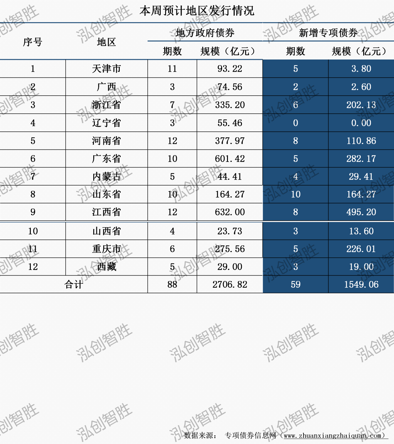 本周地方政府債券發(fā)行規(guī)模2707億元;
