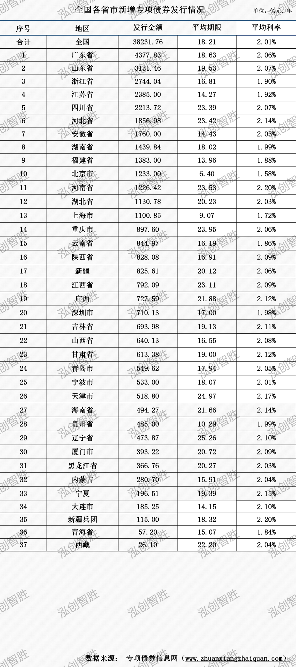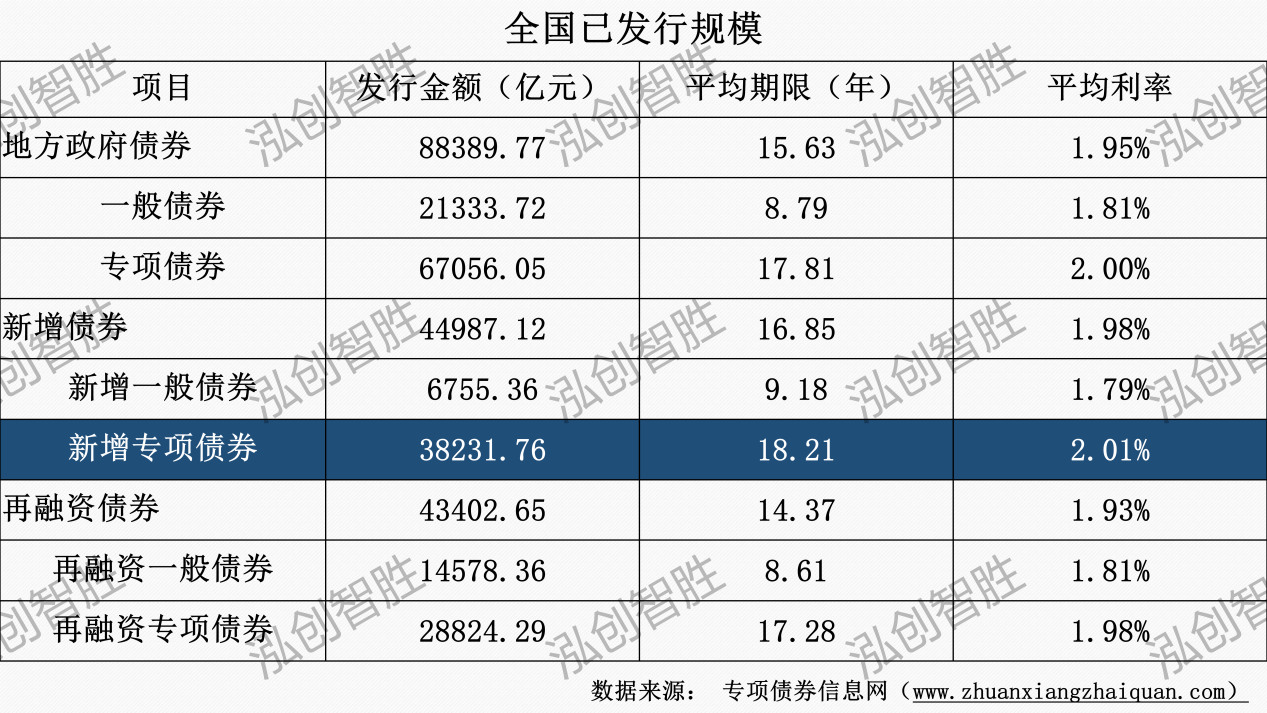 截至10月26日,2025年新增專項(xiàng)債券已發(fā)行38232億元,平均期限18.21年,平均利率2.01%。